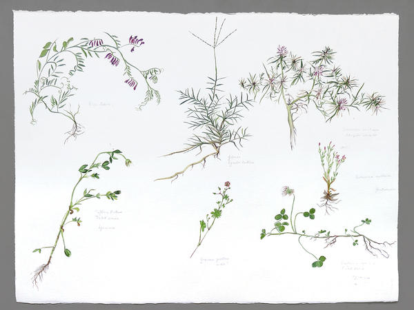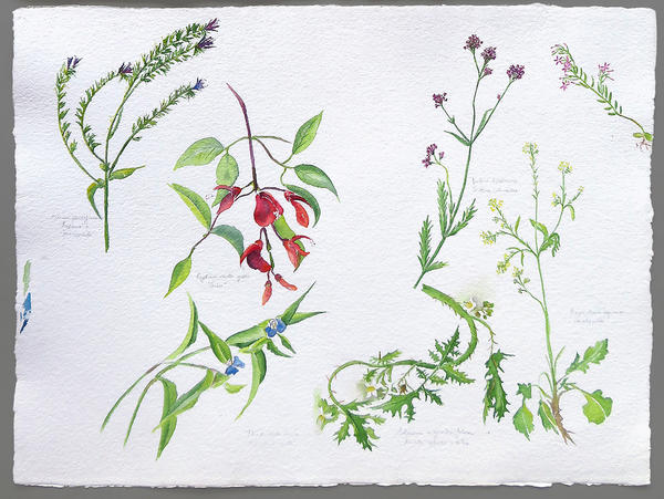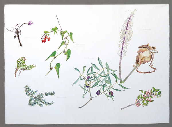 Botanical sketches . Watercolour on Arches paper . 57 x 76 cm